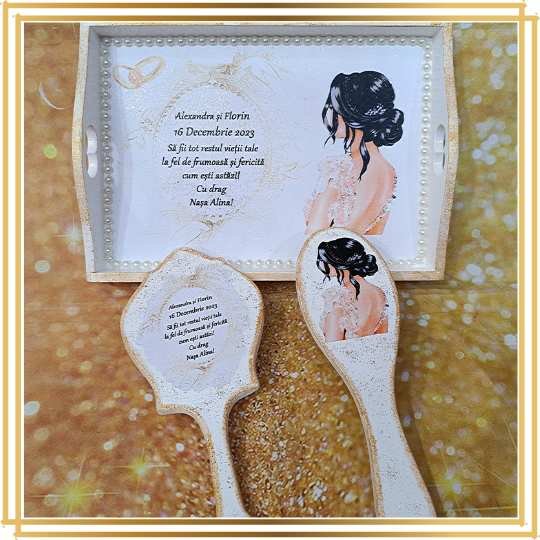 Pentru nuntă, creăm accesorii personalizate care adaugă emoție și eleganță fiecărui moment special. De la tăvițe, pahare și lumânări, până la detalii pentru pregătirea mirilor, fiecare piesă este realizată manual, cu atenție la simboluri, tradiții și stilul ales. Ne dorim ca fiecare creație să spună povestea voastră și să transforme ziua nunții într-o amintire autentică și de neuitat.