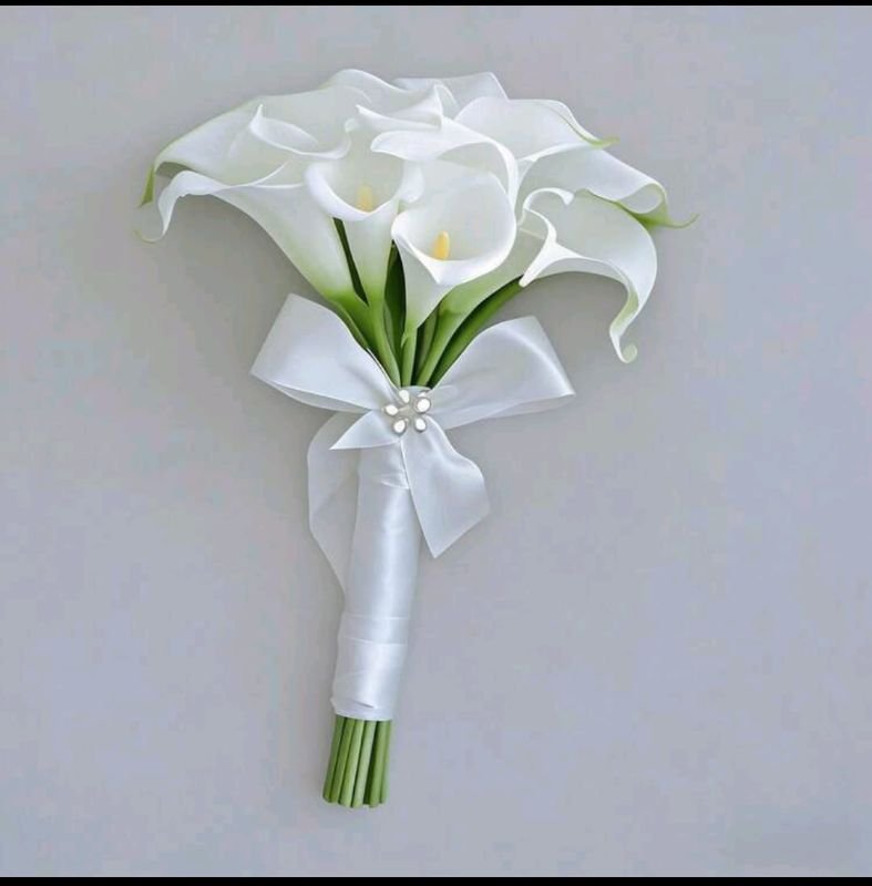 Buchet pentru mireasa, realizat din cale silicon albd si se poate accesorizat cu perle.