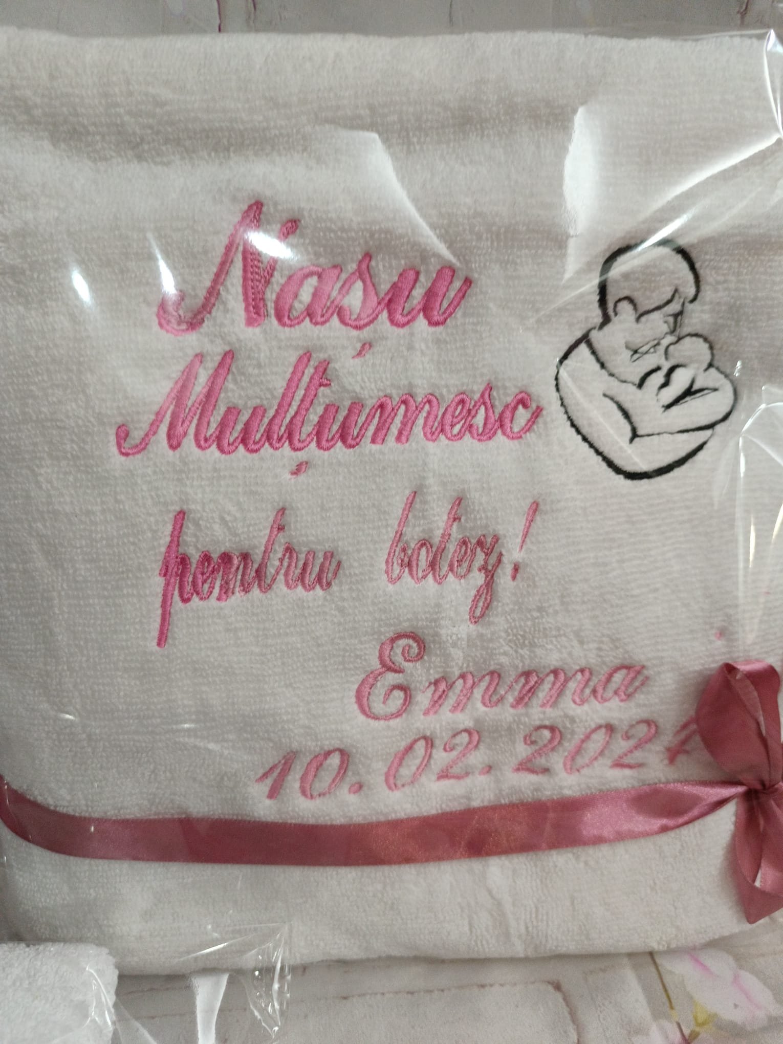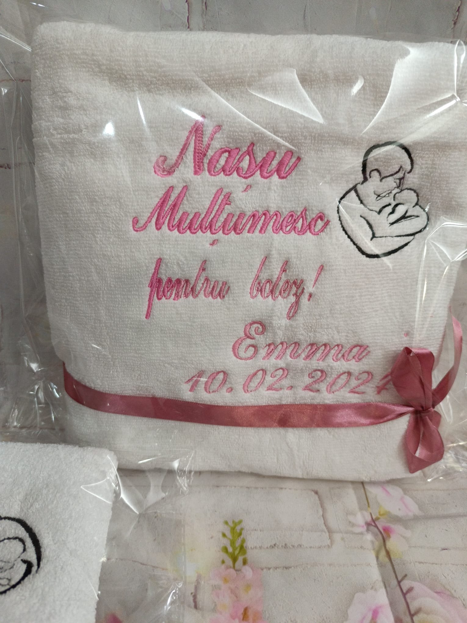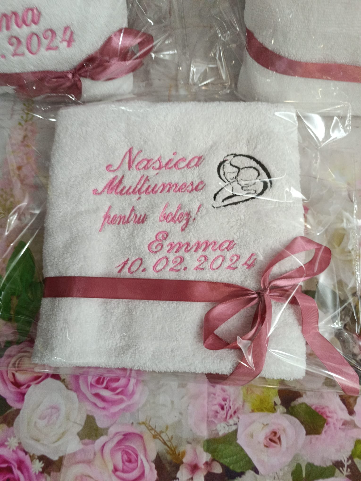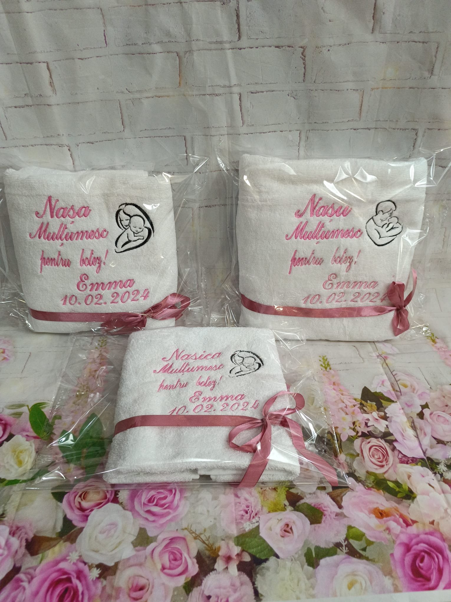 Prosoapele cadou pentru botez sunt o alegere delicată și practică pentru a marca unul dintre cele mai importante momente din viața unui copil. Realizate din materiale de calitate, moi și plăcute la atingere, aceste prosoape pentru botez sunt perfecte pentru a fi oferite ca dar simbolic pentru bebeluș sau pentru persoanele apropiate care participă la ceremonie.