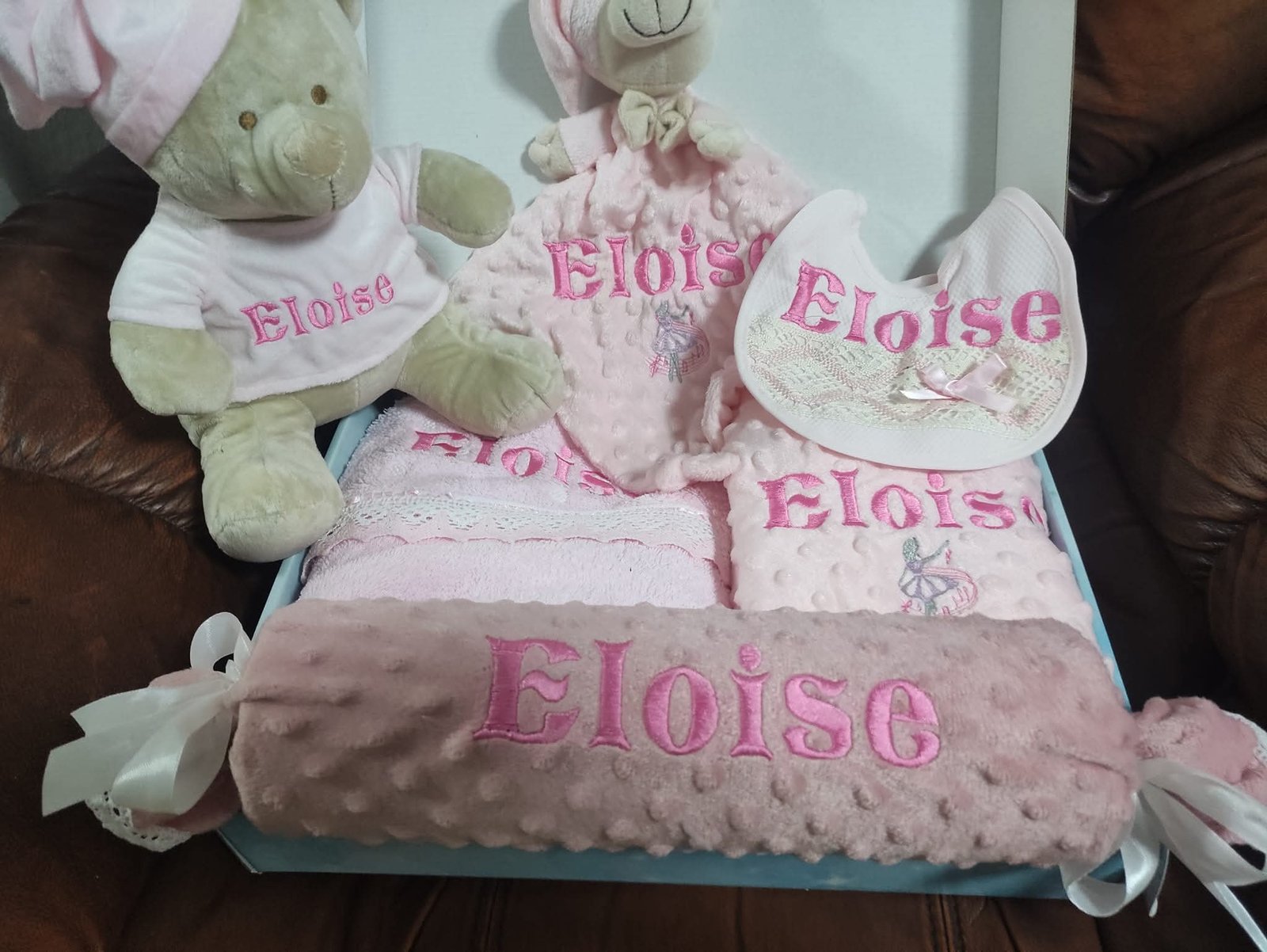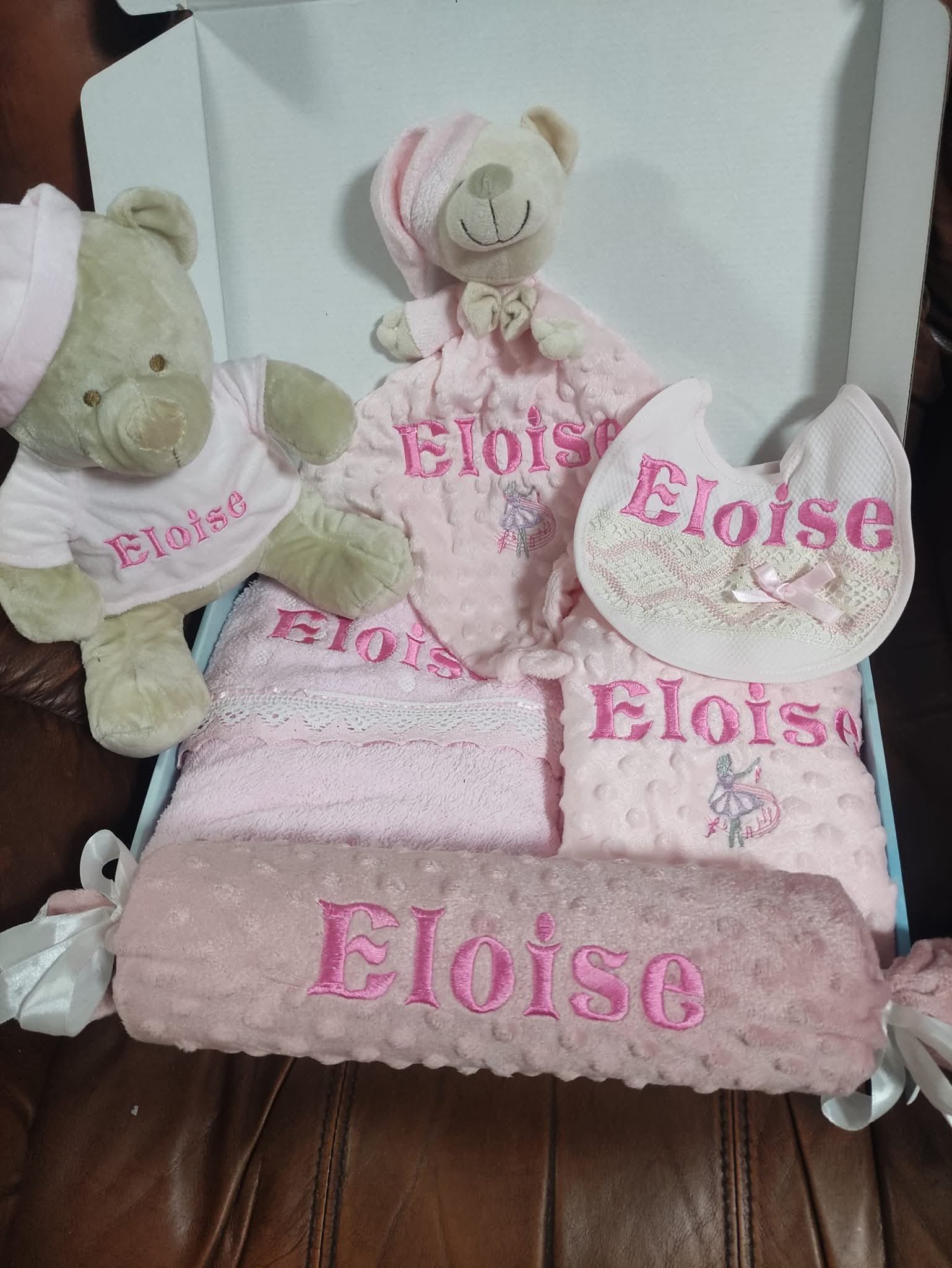 🎀 Personalizare completă: Toate articolele din pachet sunt personalizate cu numele bebelușului, ceea ce îl face un cadou unic și emoționant. Ideal pentru nașteri, botezuri sau petreceri pentru copii.