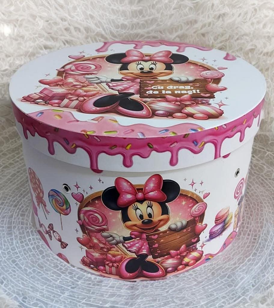 Cutia poate fi insotita de trusou de botez din 7 piese, cu figurina tematica brodata pe panza de mir si pe prosopul de bebe. Trusoul poate fi personalizat cu nume sau nume si data