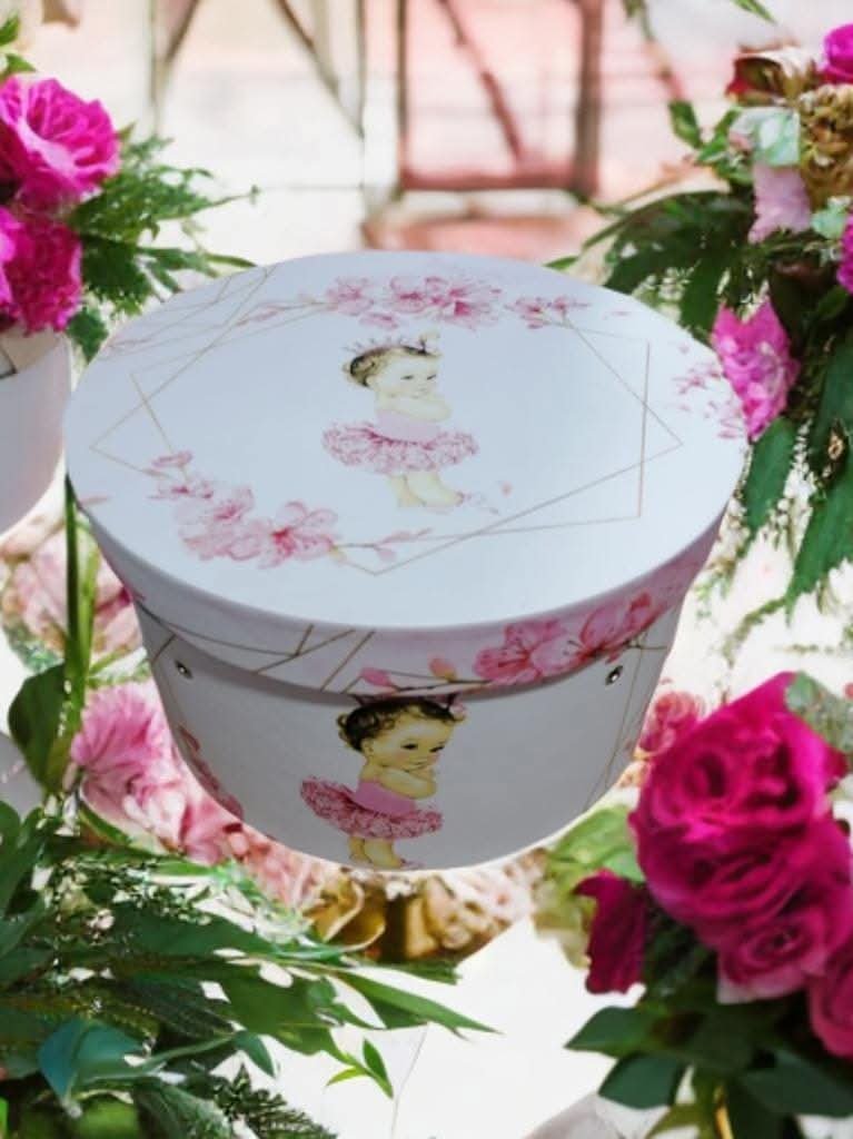 Cutia poate fi insotita de trusou de botez din 7 piese, cu figurina tematica brodata pe panza de mir si pe prosopul de bebe. Trusoul poate fi personalizat cu nume sau nume si data
