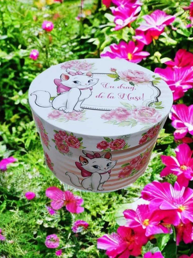 Cutia poate fi insotita de trusou de botez din 7 piese, cu figurina tematica brodata pe panza de mir si pe prosopul de bebe. Trusoul poate fi personalizat cu nume sau nume si data