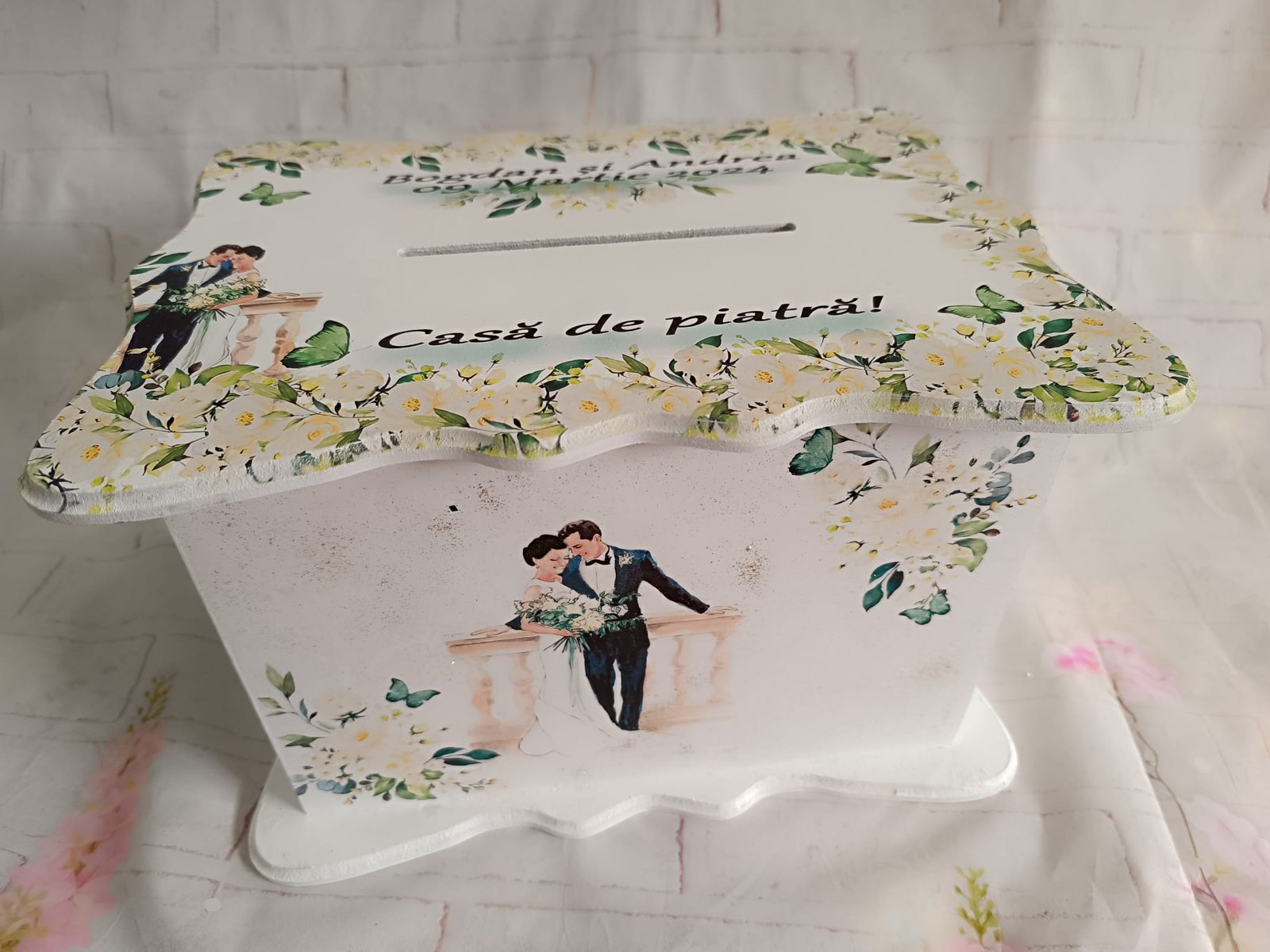 În colecția noastră de cutii nuntă, vei găsi modele realizate cu atenție la detalii, din materiale de calitate, decorate cu elemente delicate și posibilitatea de personalizare cu nume, dată sau mesaje speciale. Fiecare cutie este gândită pentru a completa armonios tematica nunții voastre.