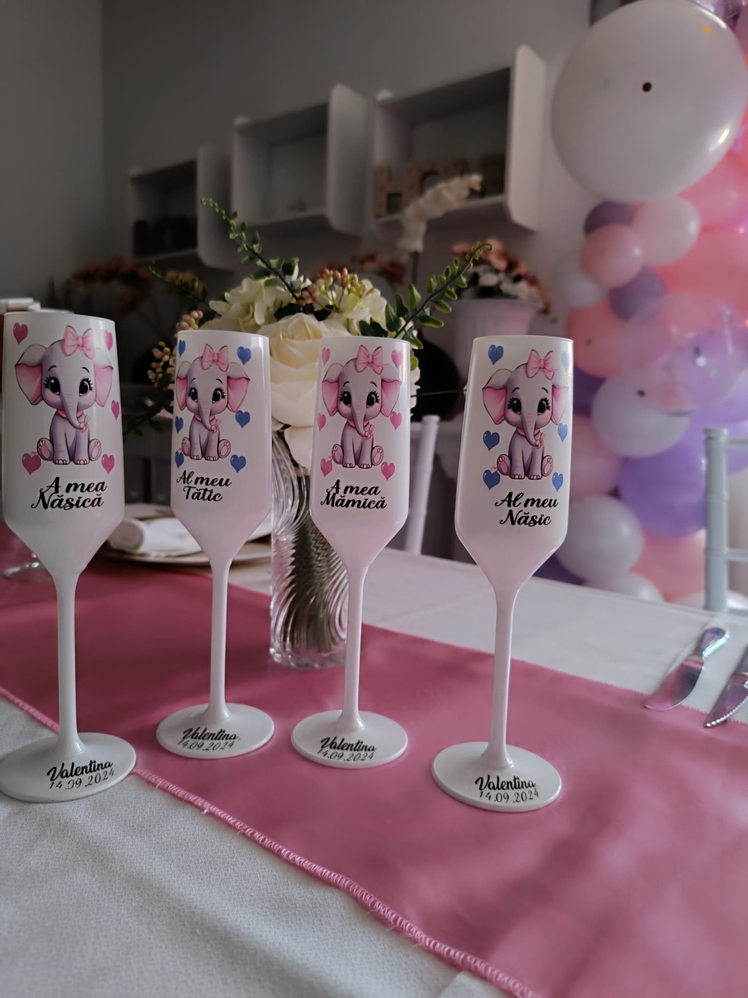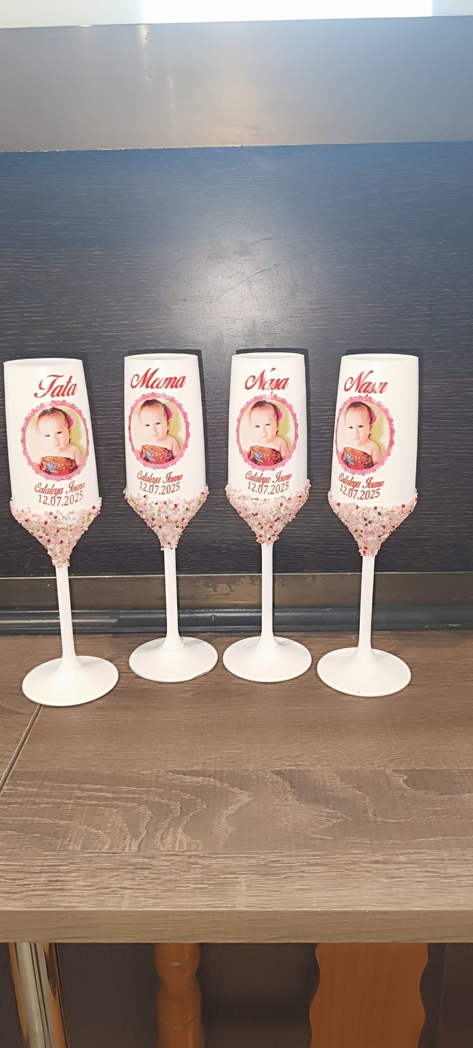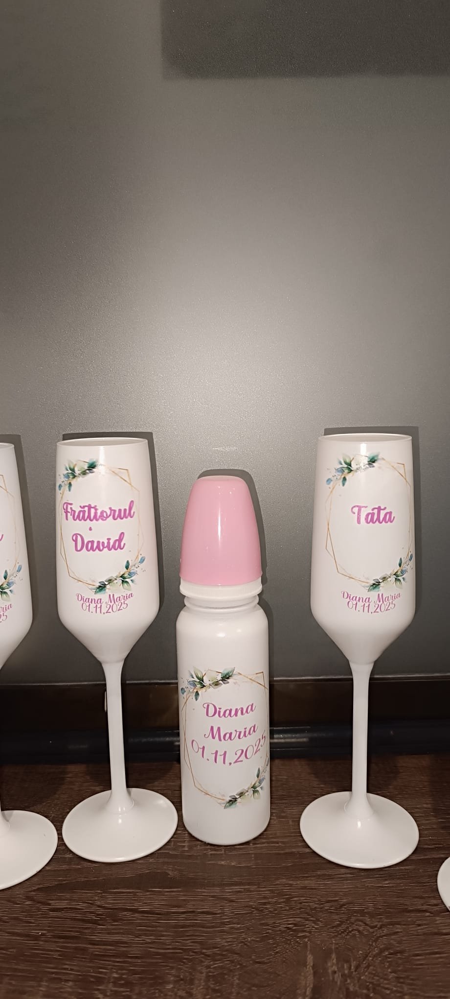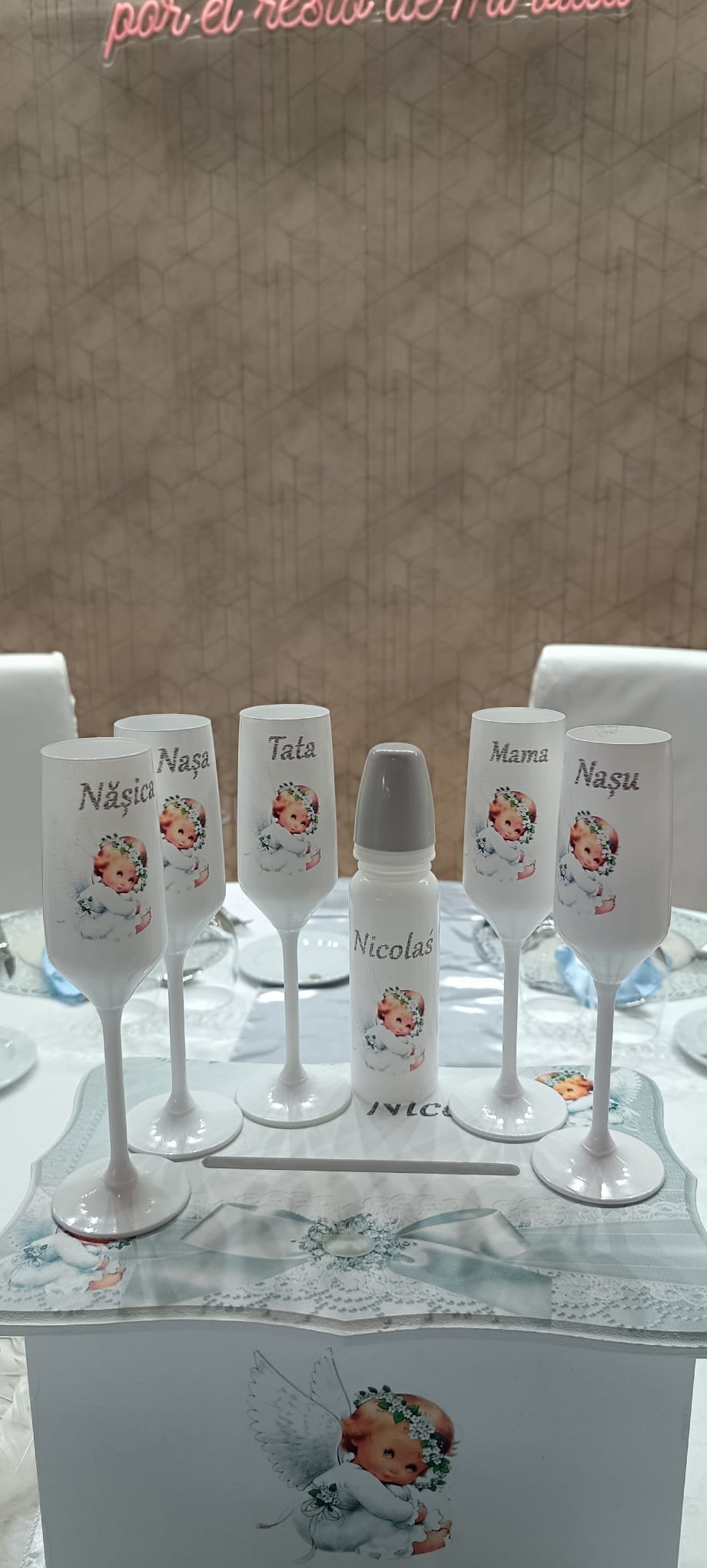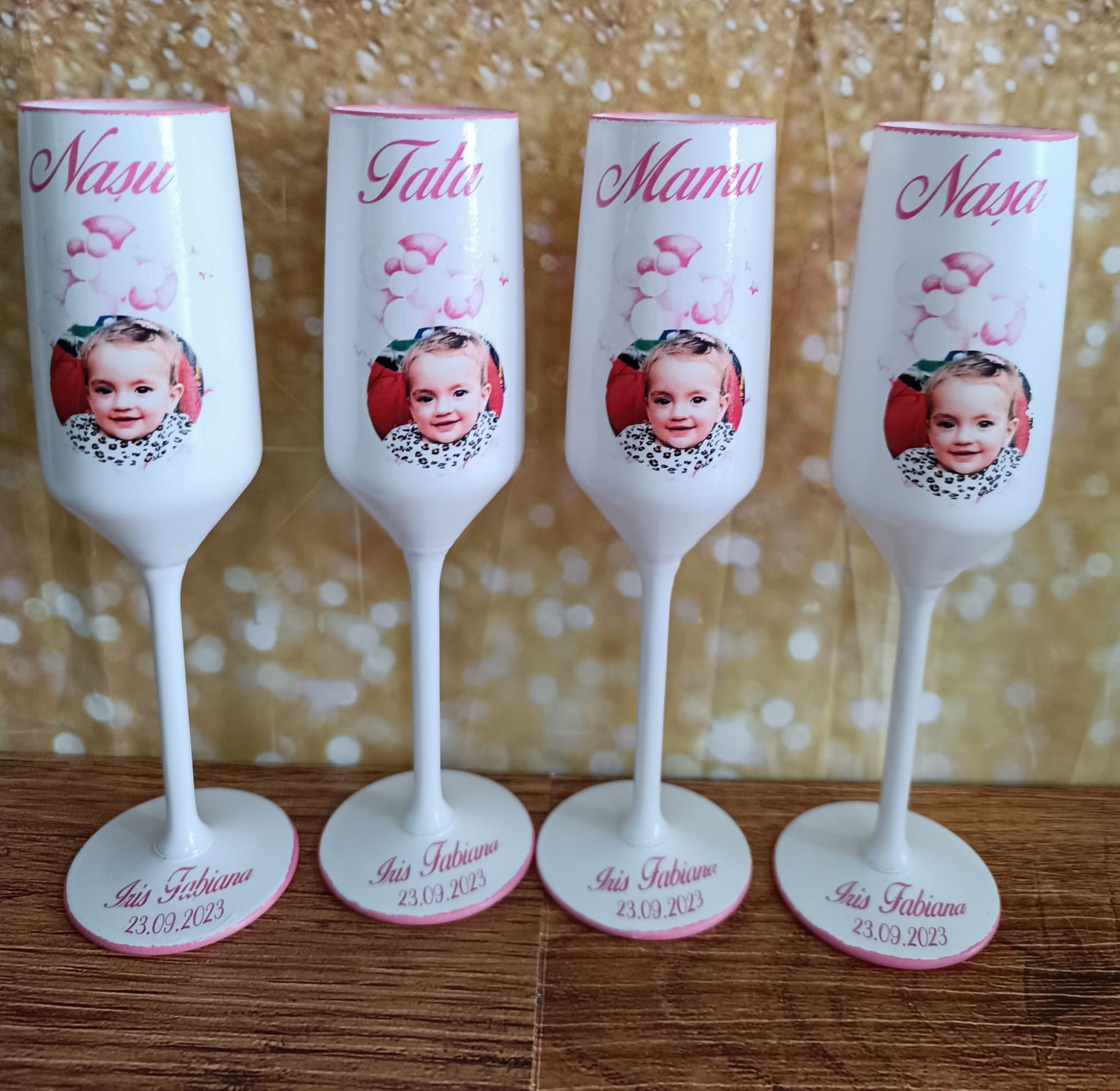 Fie că sunt decorate cu numele copilului, data botezului, simboluri delicate sau elemente florale, paharele botez adaugă un plus de rafinament mesei festive. Sunt ideale atât pentru ceremonie, cât și pentru petrecerea de după, dar și ca obiect decorativ sau cadou special.