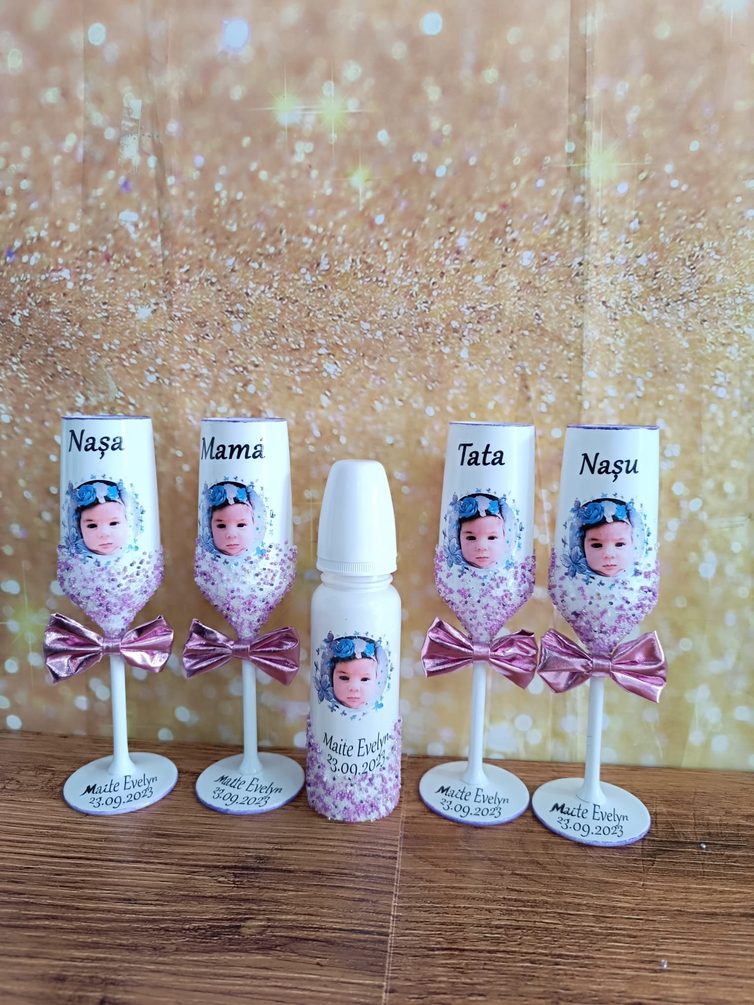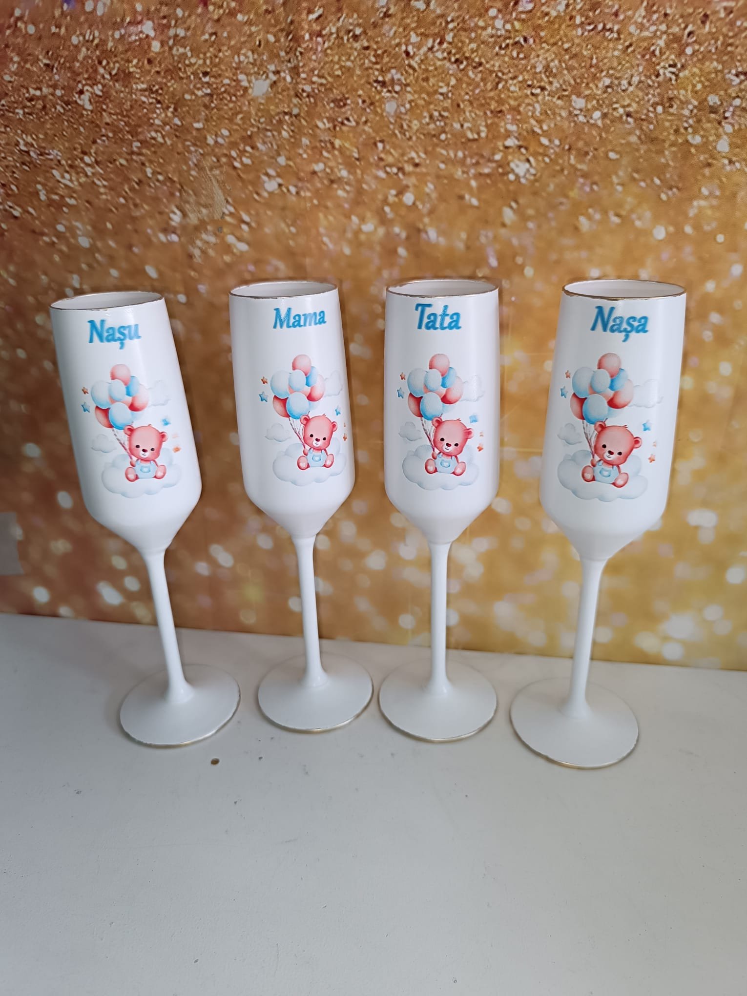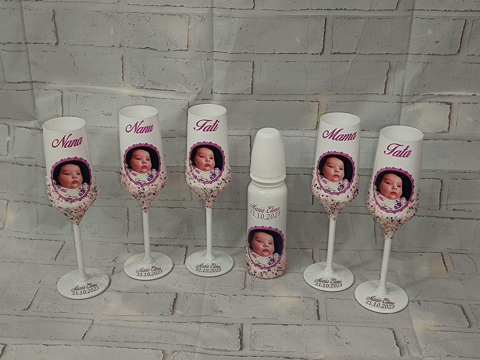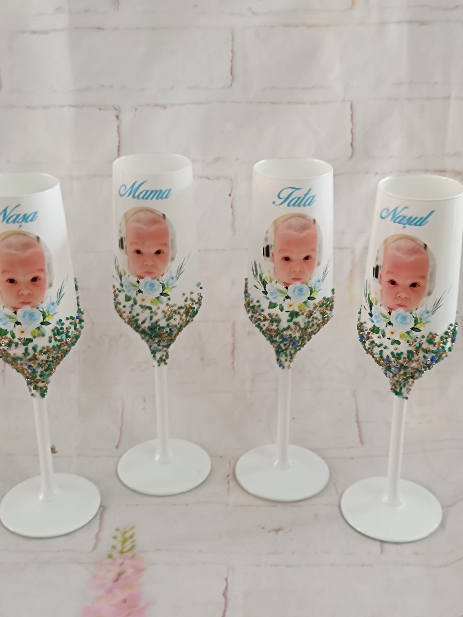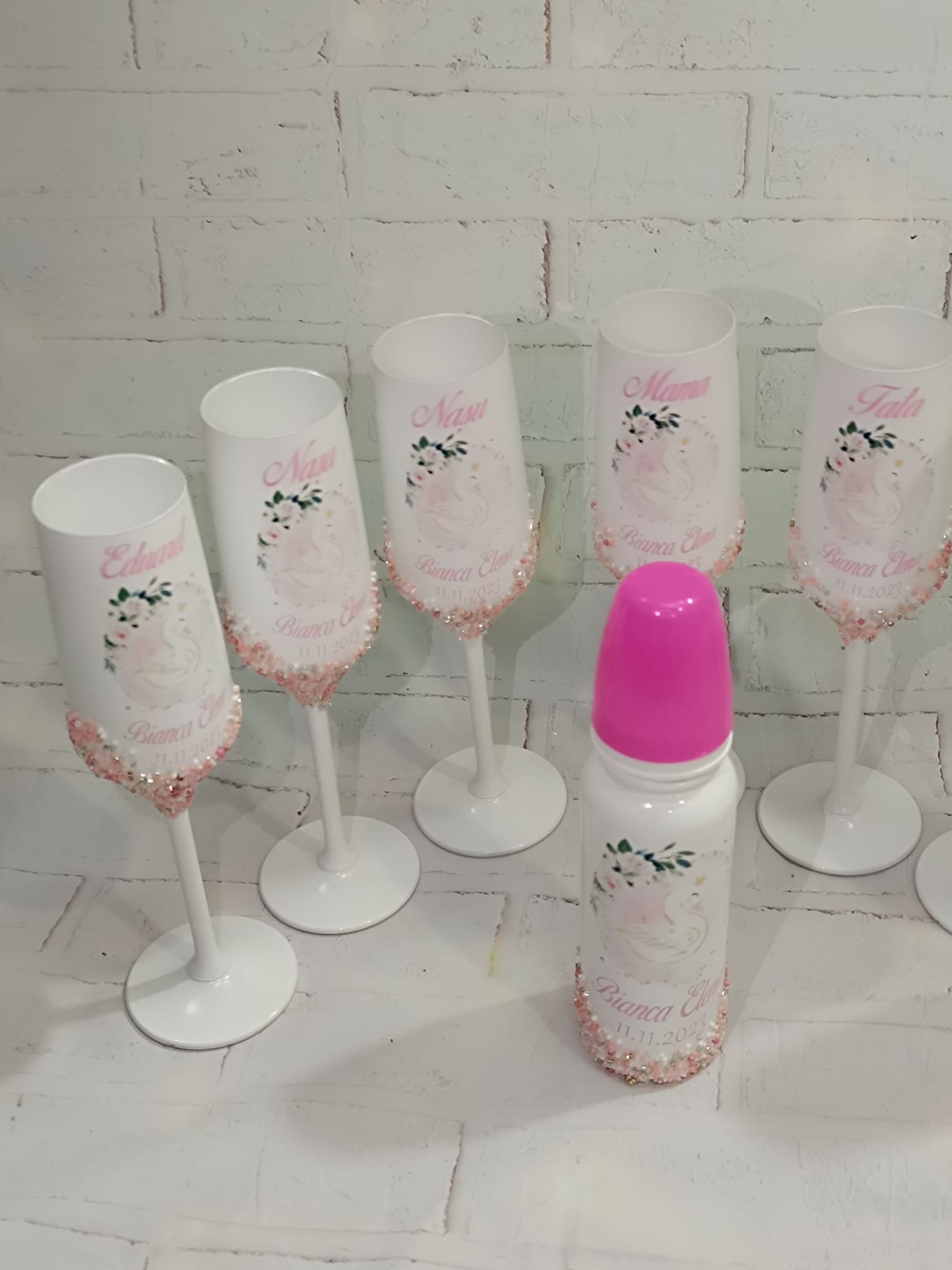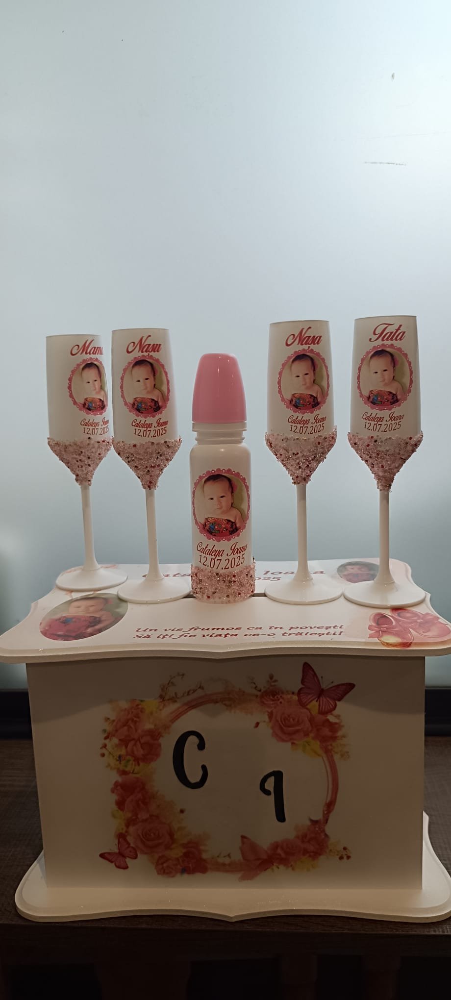 Fie că sunt decorate cu numele copilului, data botezului, simboluri delicate sau elemente florale, paharele botez adaugă un plus de rafinament mesei festive. Sunt ideale atât pentru ceremonie, cât și pentru petrecerea de după, dar și ca obiect decorativ sau cadou special.