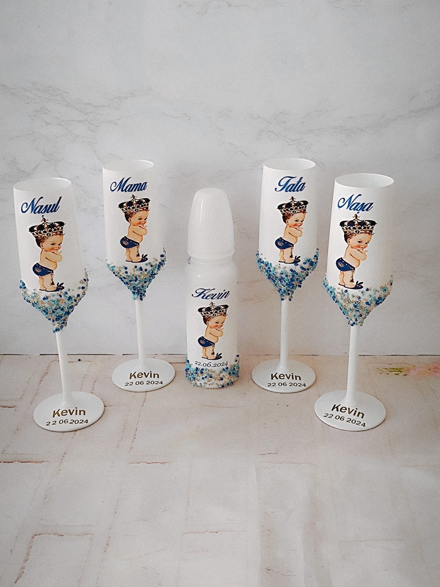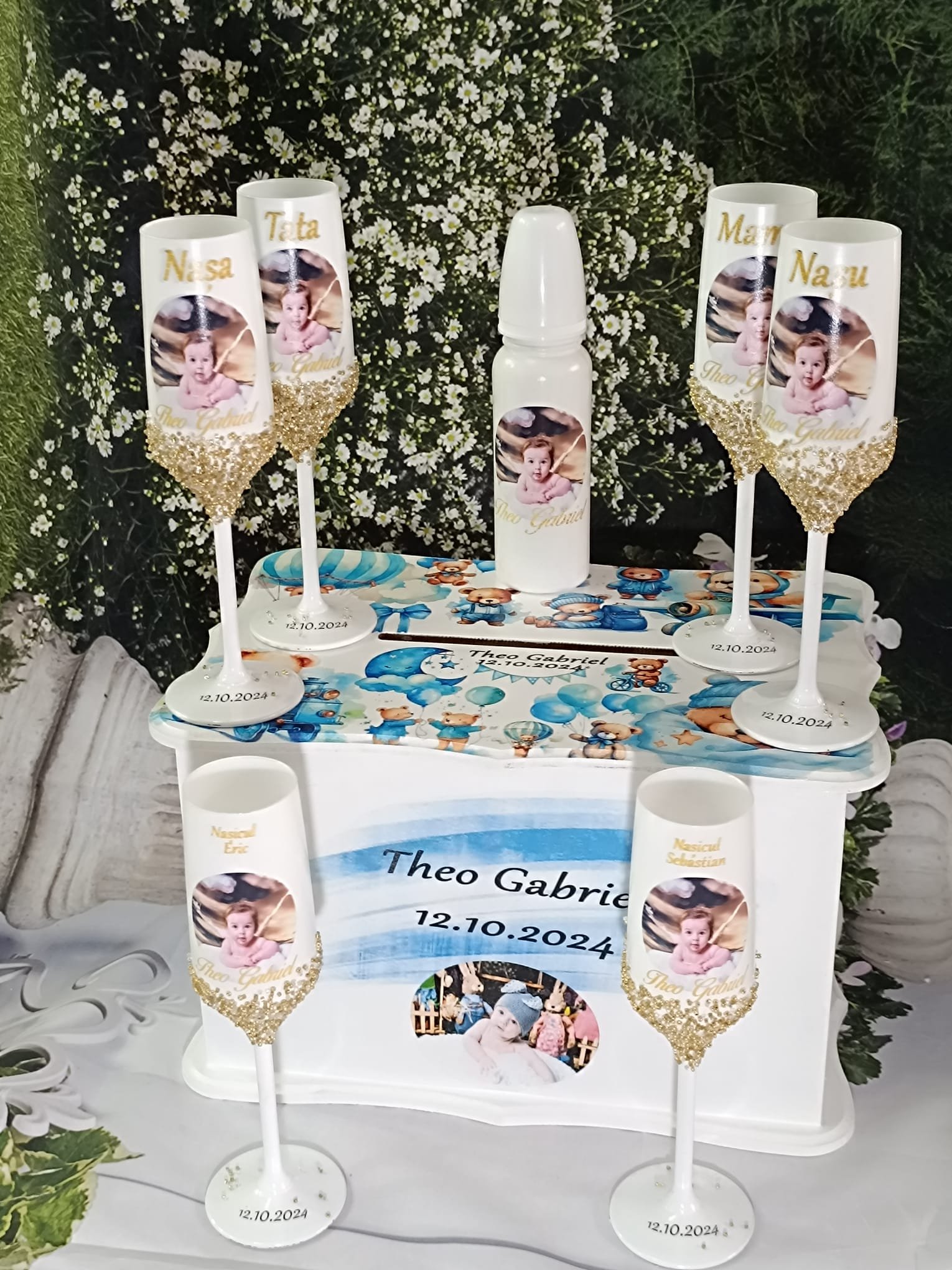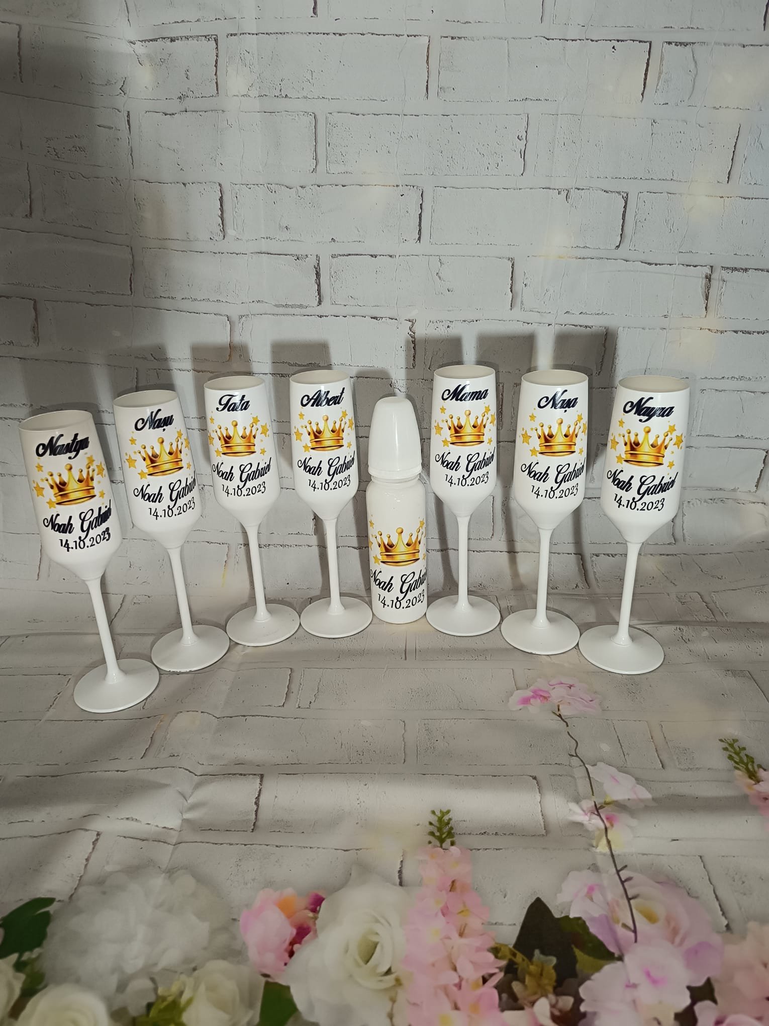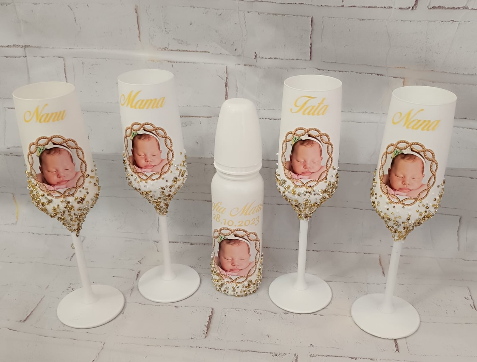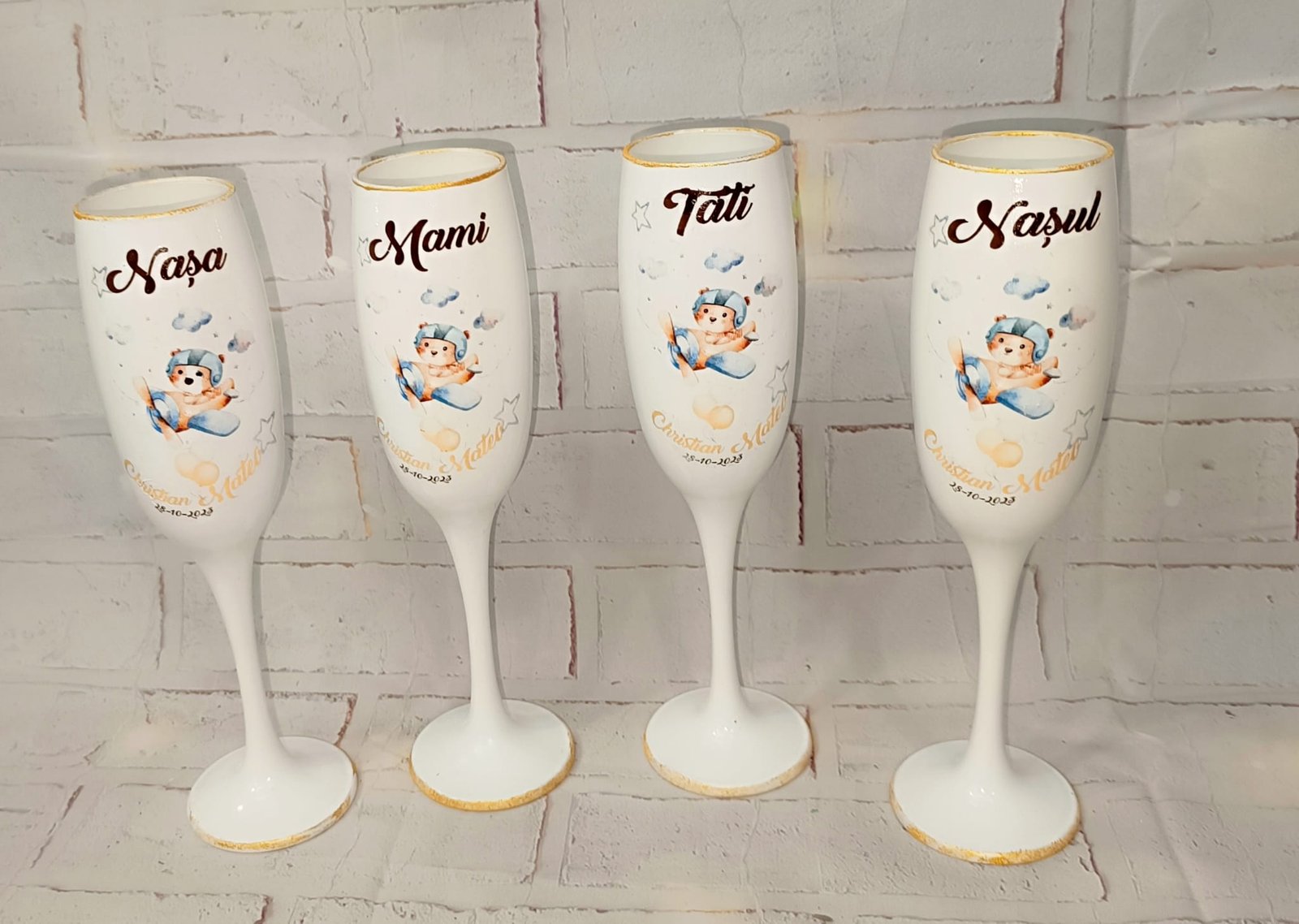 Fie că sunt decorate cu numele copilului, data botezului, simboluri delicate sau elemente florale, paharele botez adaugă un plus de rafinament mesei festive. Sunt ideale atât pentru ceremonie, cât și pentru petrecerea de după, dar și ca obiect decorativ sau cadou special.