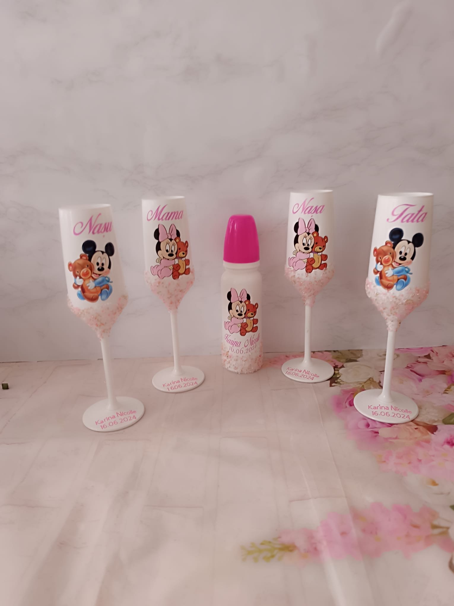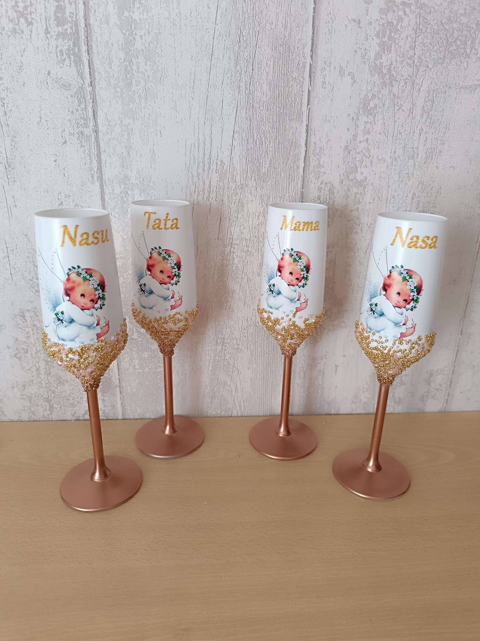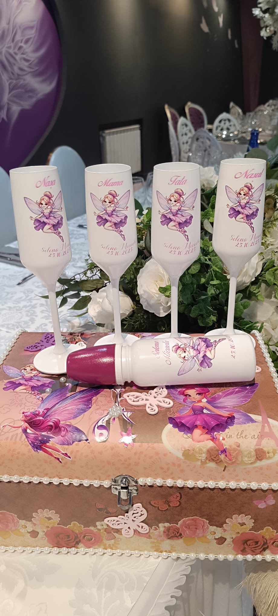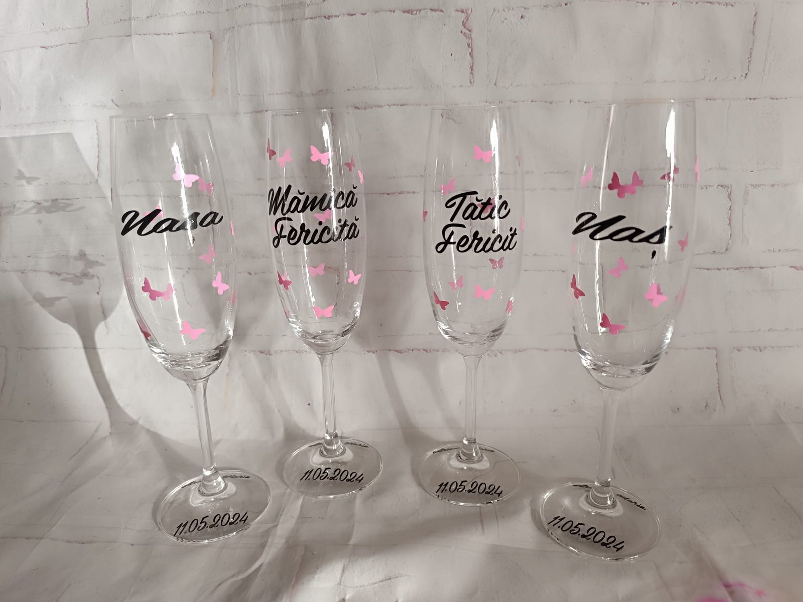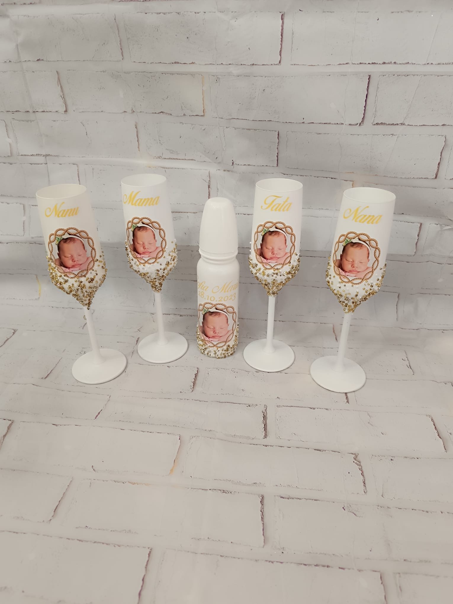 Fie că sunt decorate cu numele copilului, data botezului, simboluri delicate sau elemente florale, paharele botez adaugă un plus de rafinament mesei festive. Sunt ideale atât pentru ceremonie, cât și pentru petrecerea de după, dar și ca obiect decorativ sau cadou special.